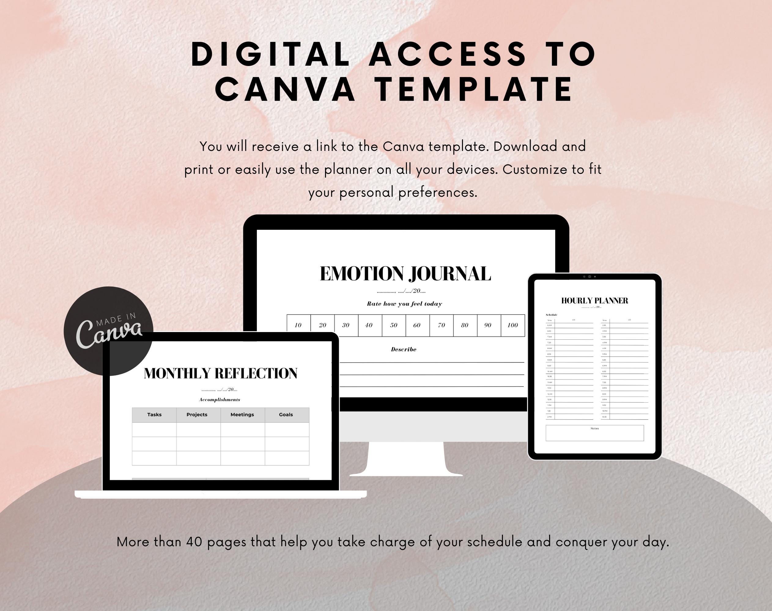 ✔️Open the PDF and click on the link to the Canva template. This link will redirect you to the Canva template and enables you to, download, print and customize your ADHD planner.