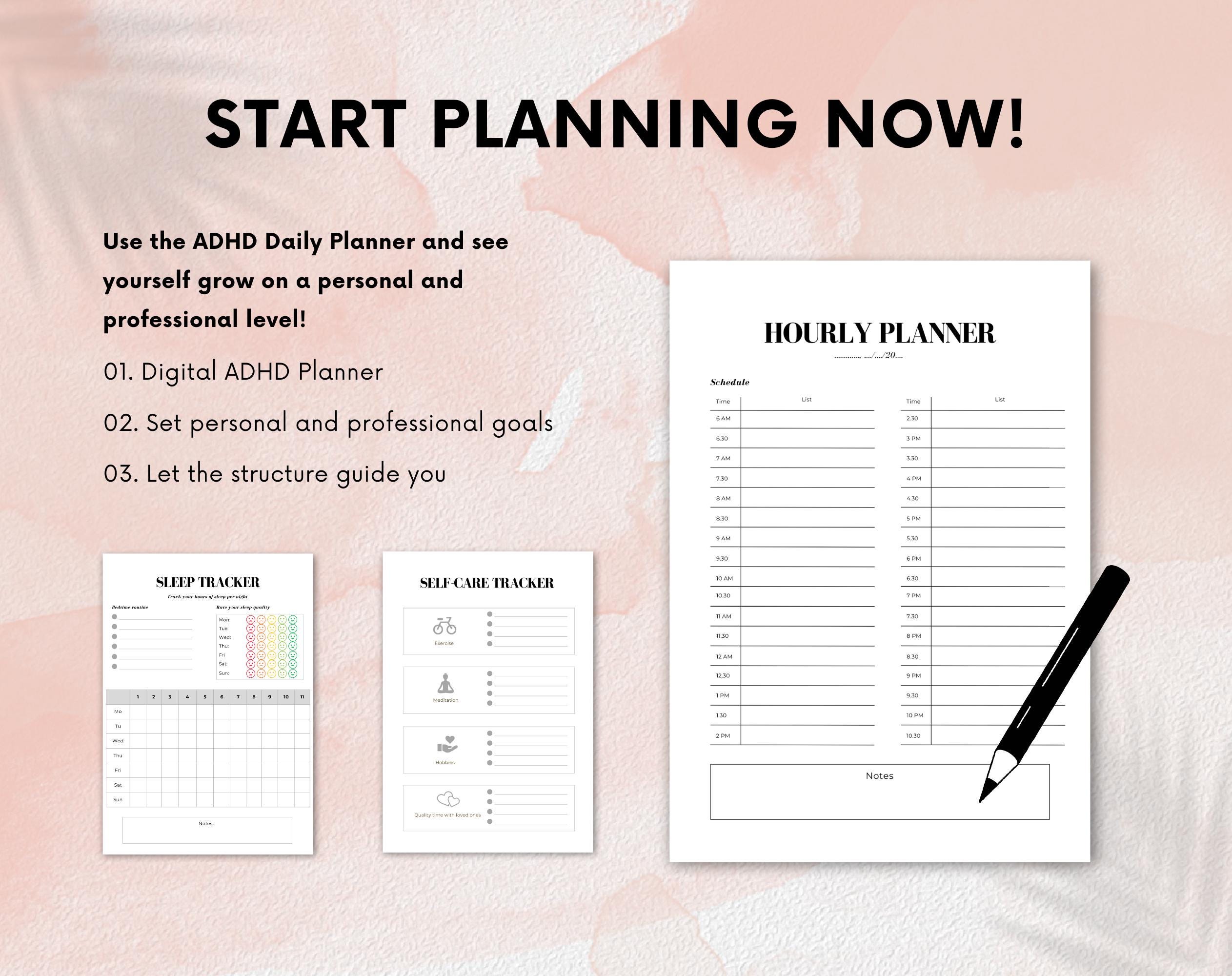 Start taking control of your life with our ADHD Planner for Adults. Whether you’re looking to streamline your daily routines or set and achieve long-term goals, this planner has got you covered. Download your printable planner today and embark on a journey to a more organized, focused, and fulfilling life.