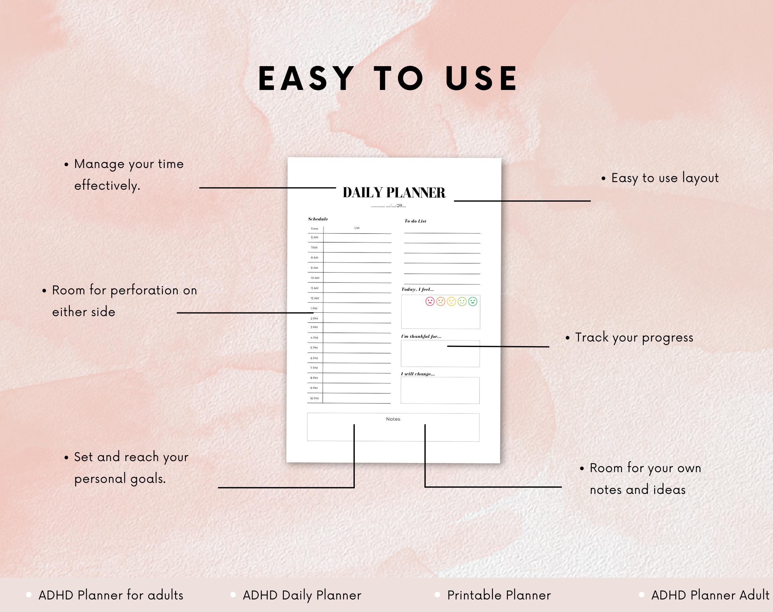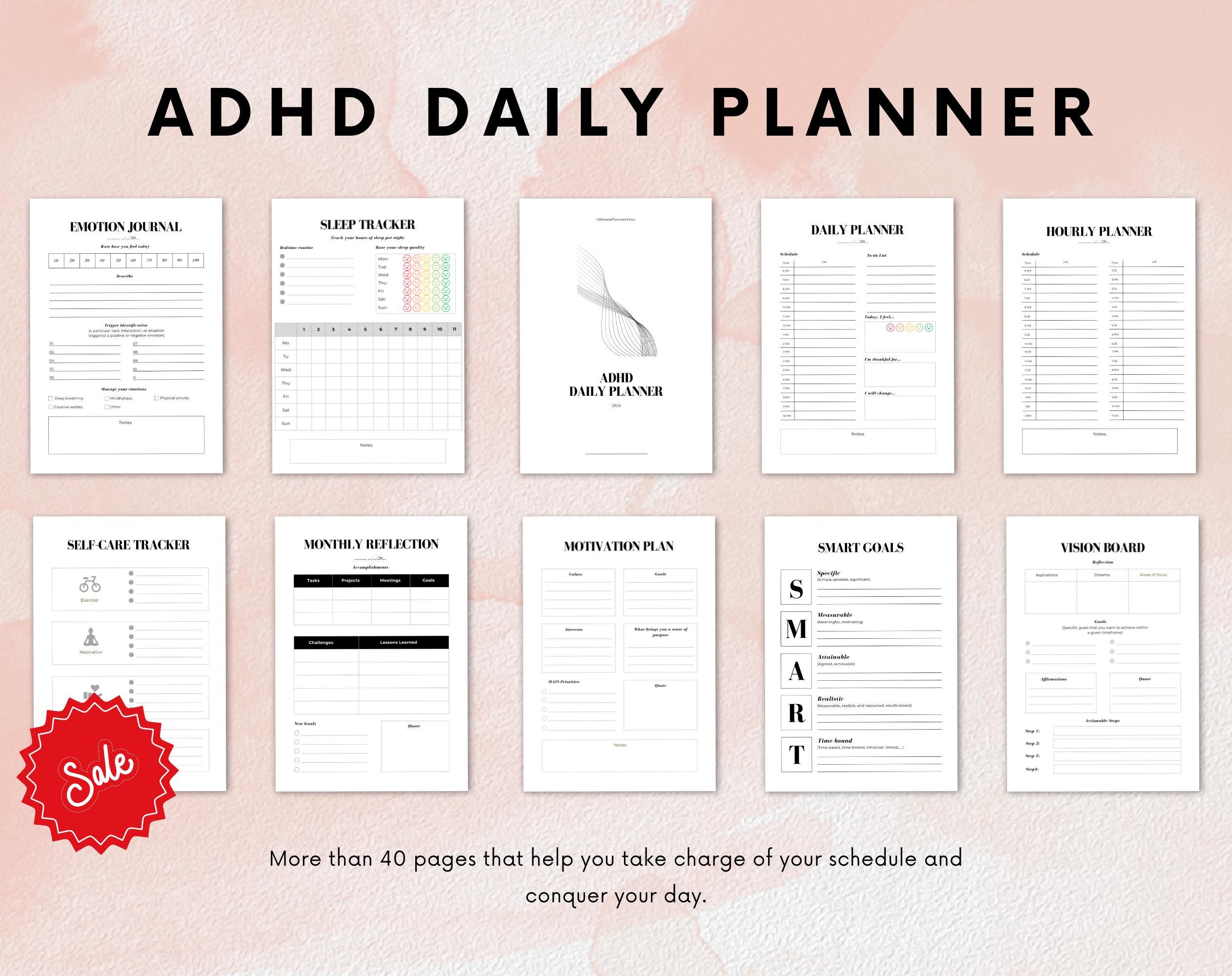 The ADHD Daily Planner for Adults contains 40+ pages
