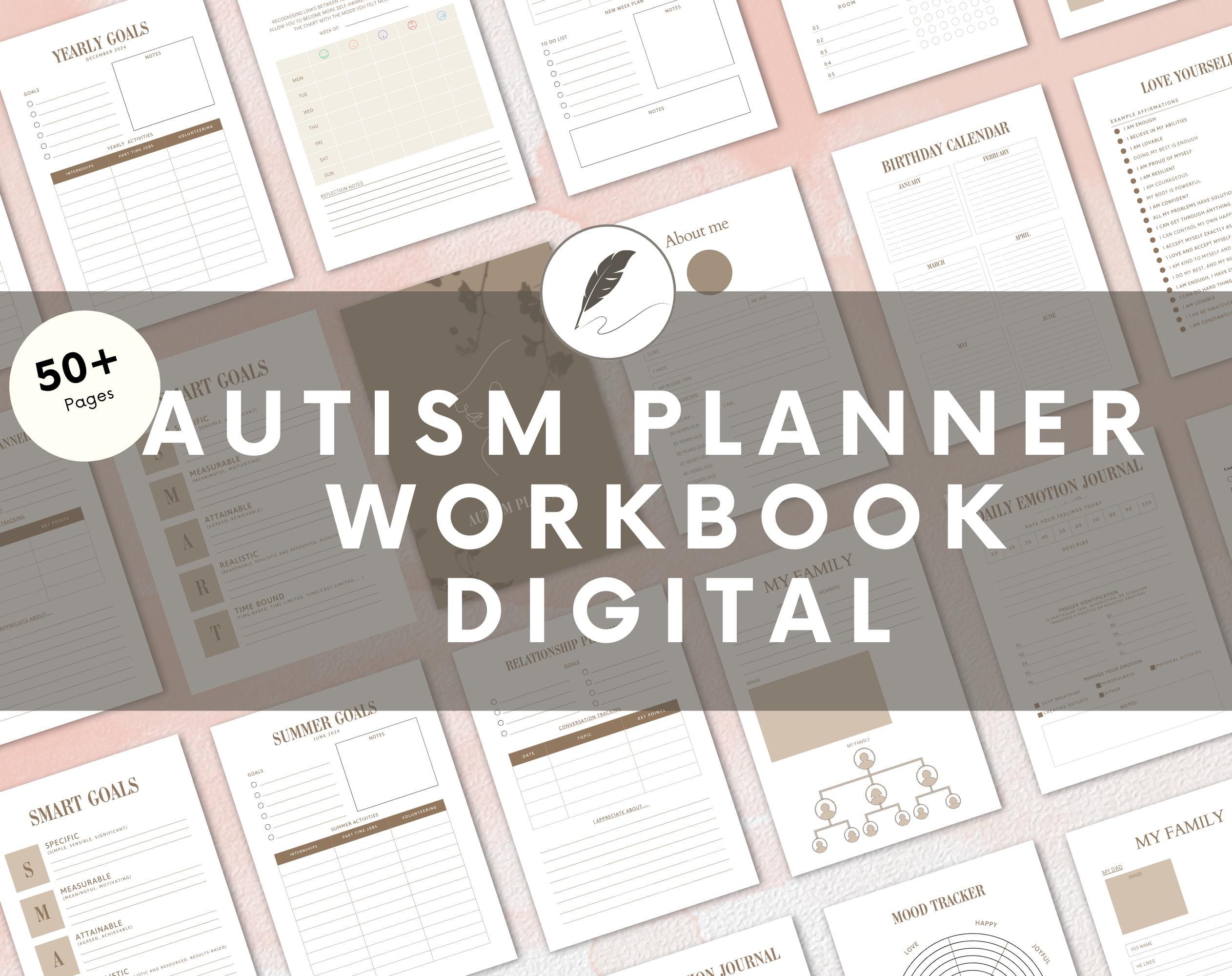 Empower yourself or your child with our meticulously designed Autism Planner, tailored to support the unique needs of kids with autism and neurodivergent individuals. This planner is more than just an organizer—it’s a comprehensive tool that aids in daily activities, therapy, and emotional well-being.