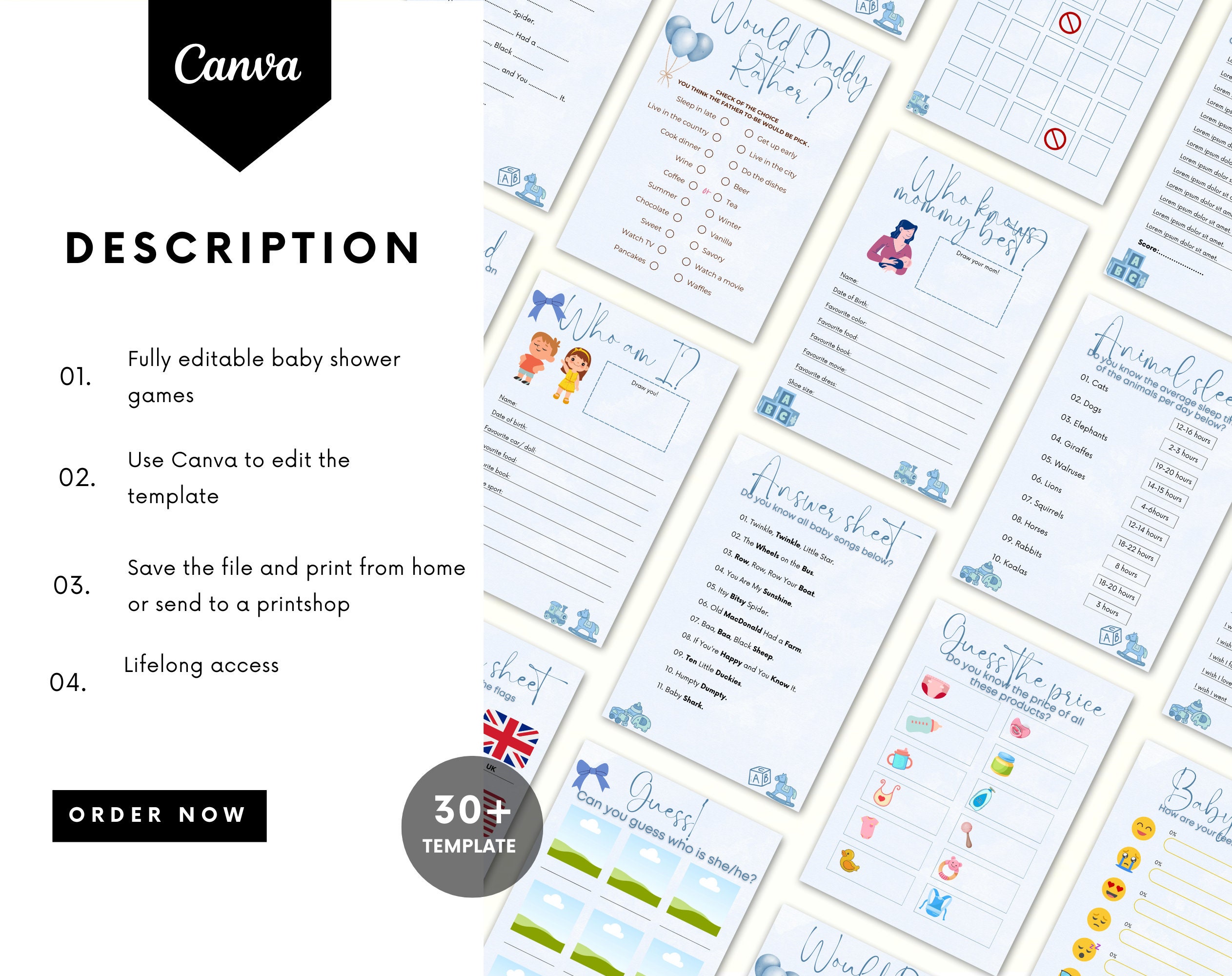 ♦25 Baby Shower Games + 6 Answer Sheets
