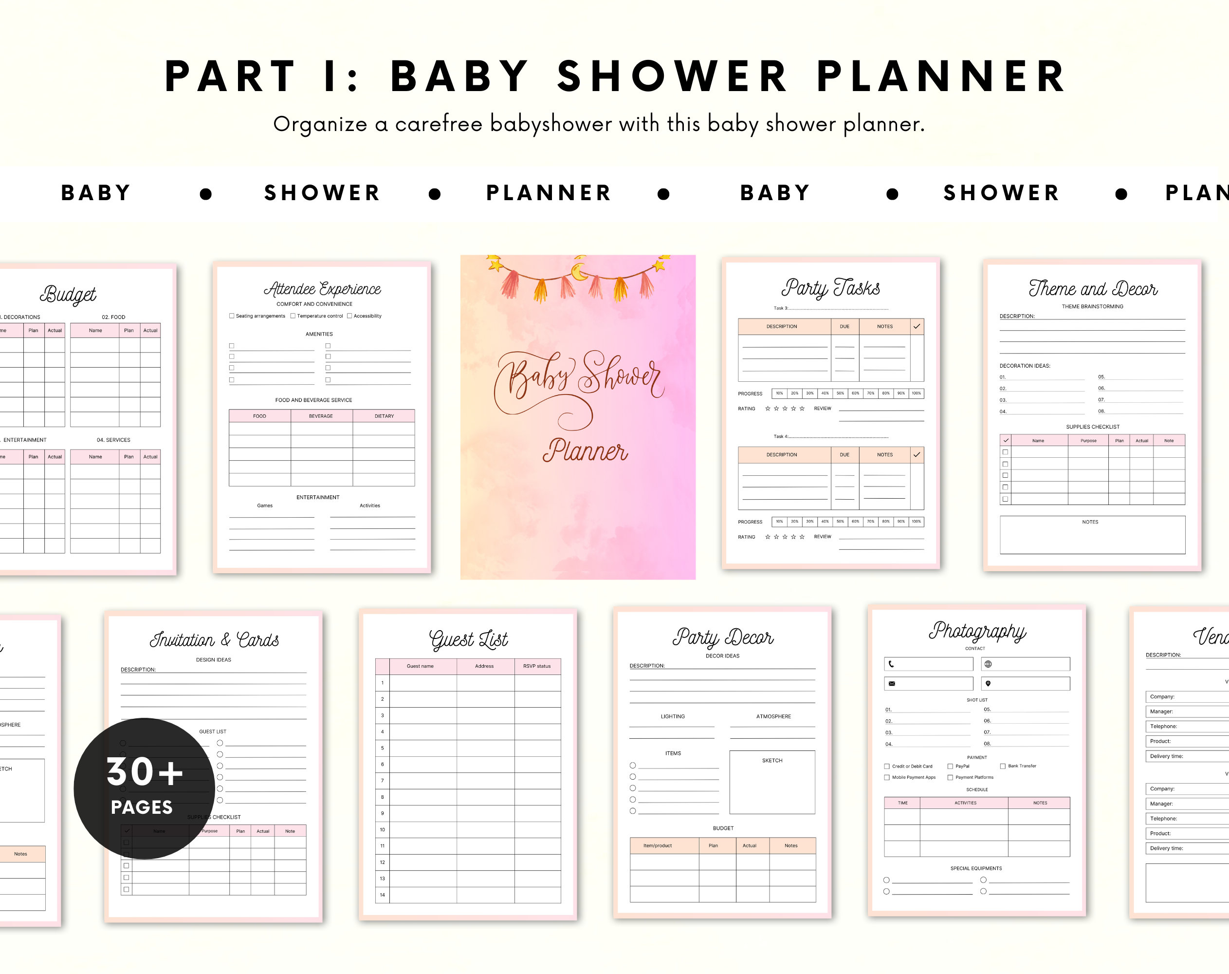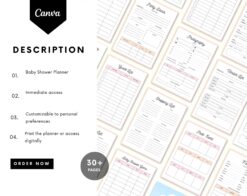 The Baby Shower Planner contains 30+ pages: