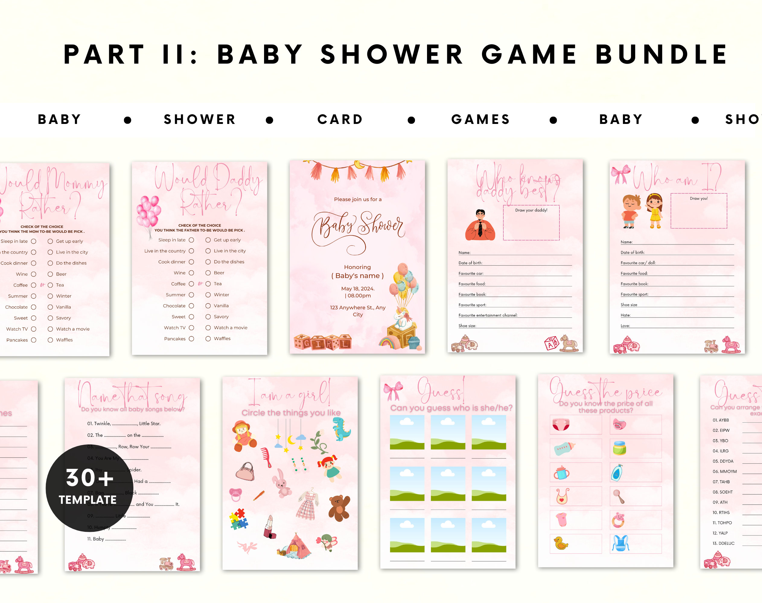 ♦25 Baby Shower Games + 6 Answer Sheets