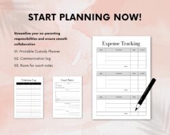 Our planner is specifically designed to support effective co-parenting, ensuring that both parents can stay organized and communicate clearly. It’s perfect for those seeking to manage child custody arrangements smoothly, with sections tailored to cover every aspect of co-parenting and child custody.