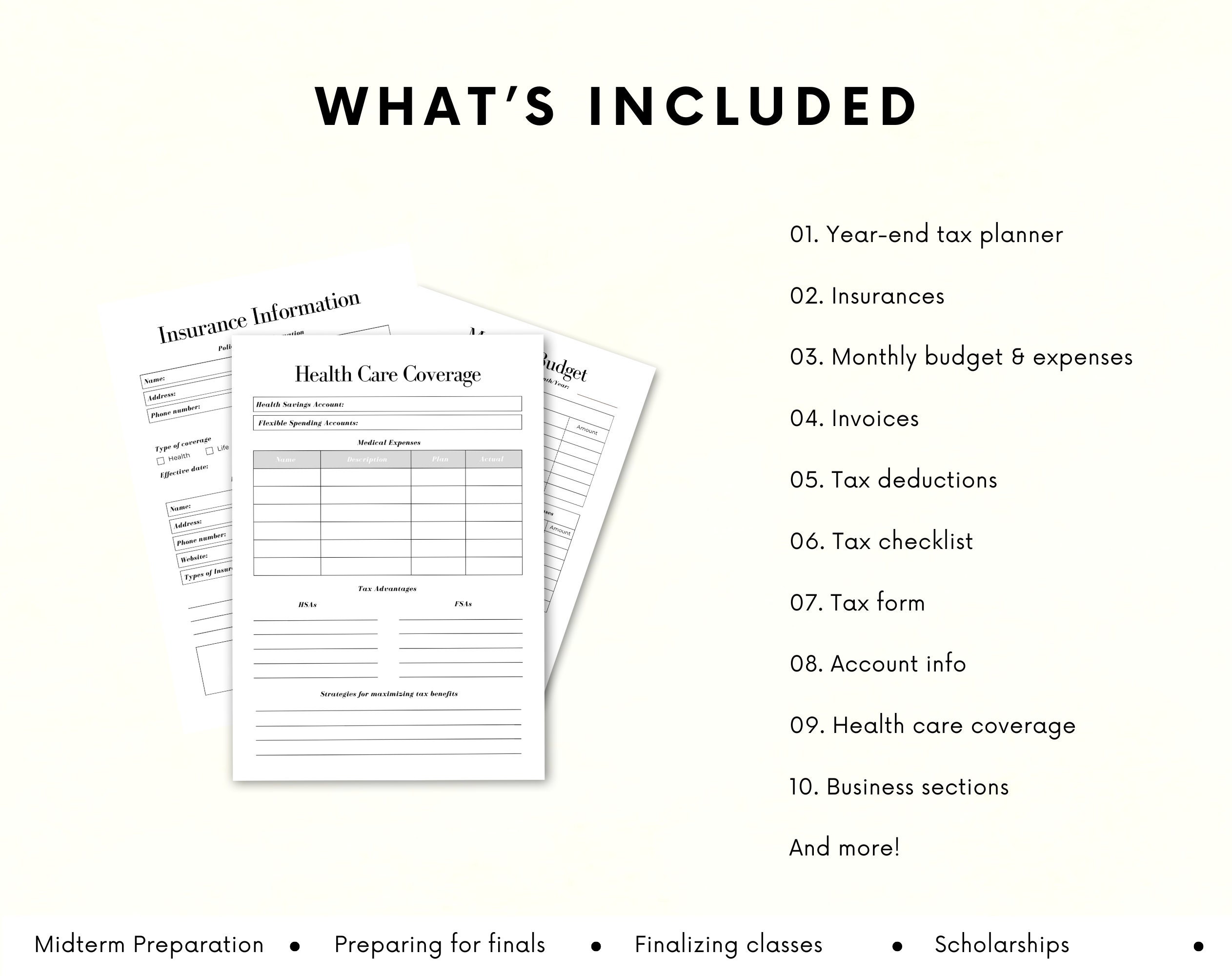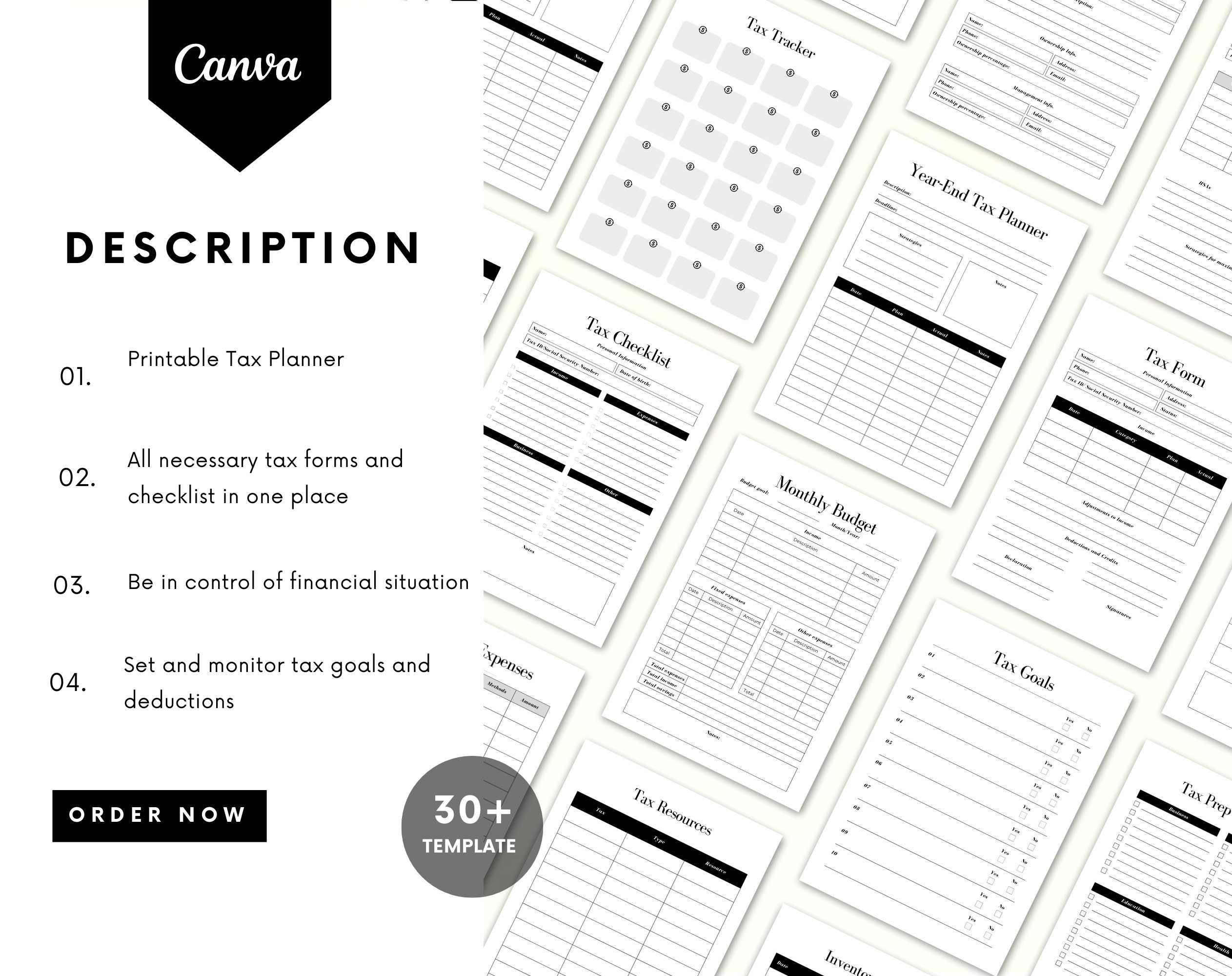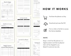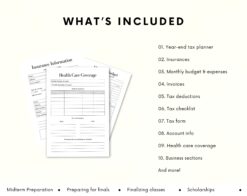 Stay organized and on top of your finances with this comprehensive Tax Planner. This planner includes sections for monthly budgeting and tracking of monthly expenses, making it easier to stay within your financial goals. Set and monitor your tax goals, track deductions, and keep all necessary tax forms and checklists in one convenient place. The planner also features a dedicated health care section, a business section for tracking expenses, and a tax tracker to ensure you don’t miss any deductions. Take the stress out of tax season and stay organized all year long with this handy Tax Planner.