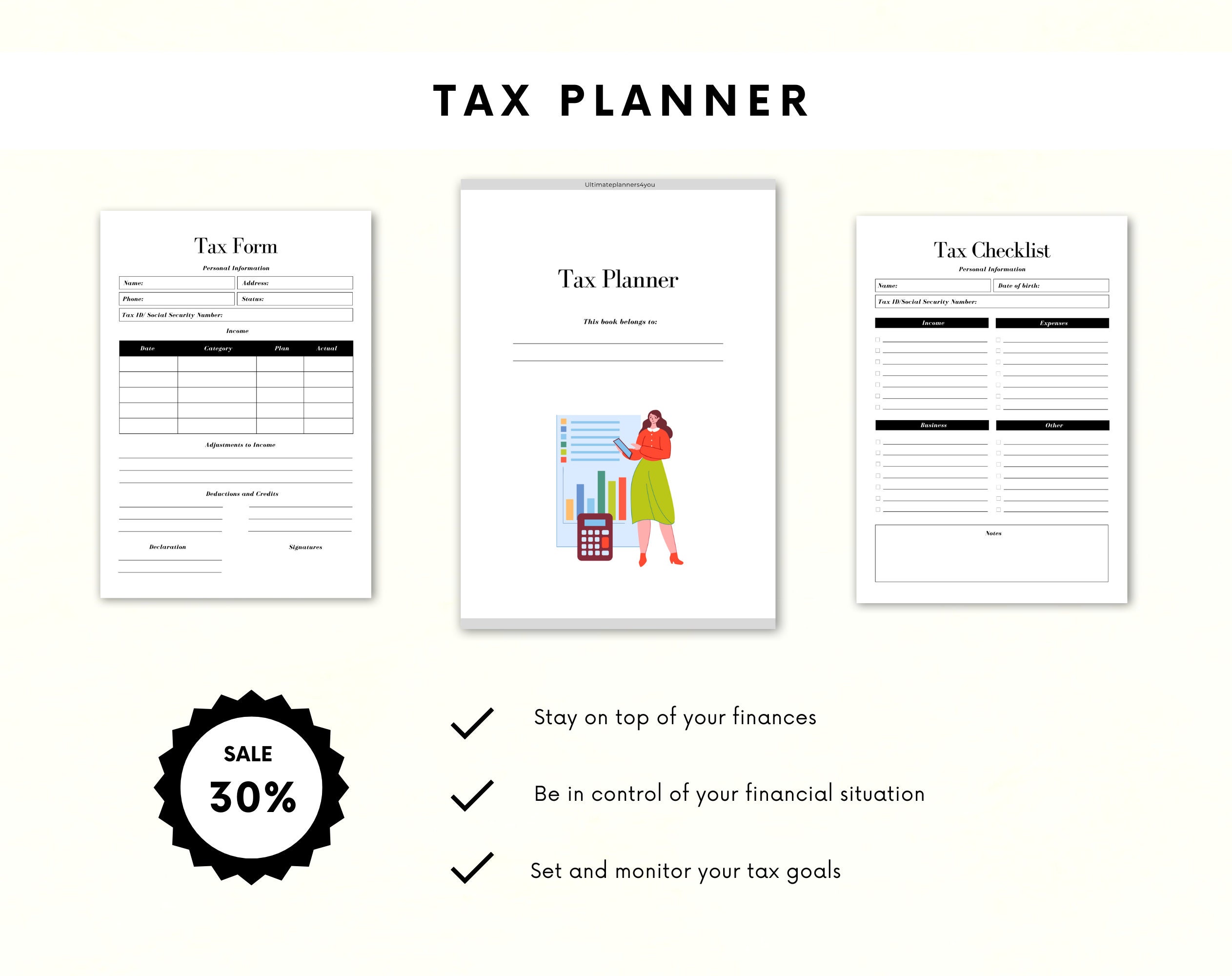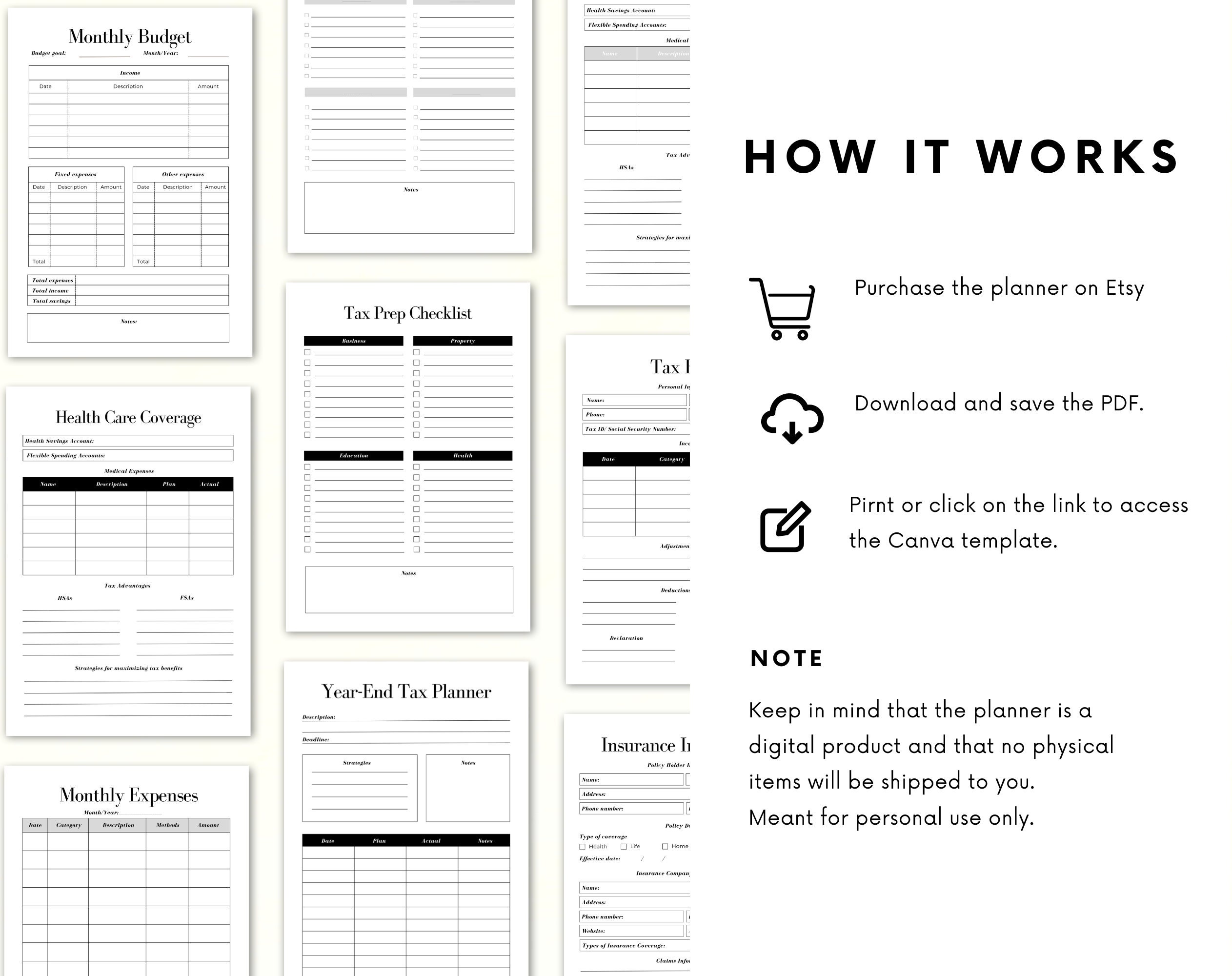♦ Keep in mind that this Tax Planner is a digital product and that you will receive a printable PDF file. No physical items will be shipped to you.