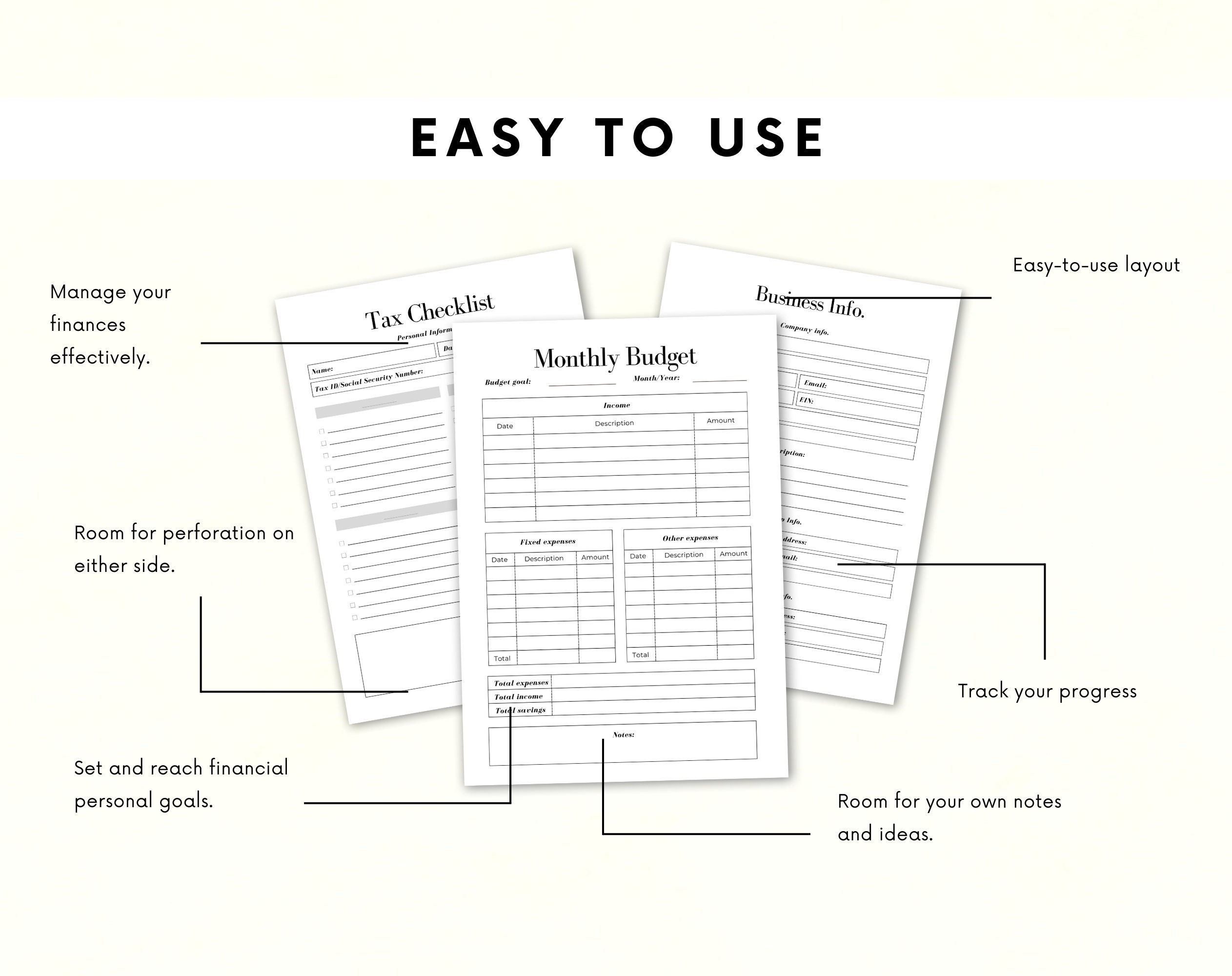 ♦ The Tax Planner printable is meant for PERSONAL USE only. The planner DOES NOT come with a commercial license to copy, alter, share, re-sell or distribute it in any way.