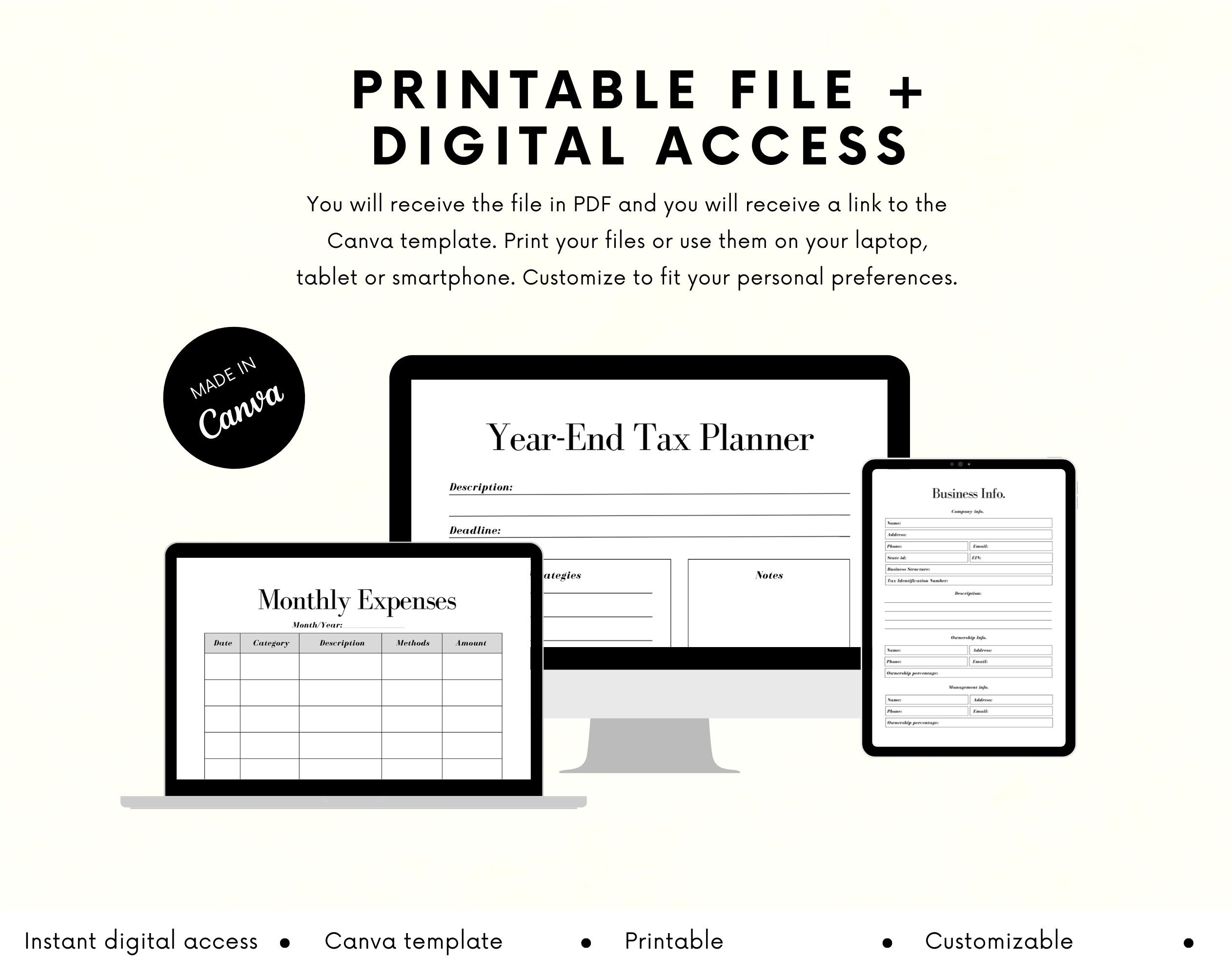 ♦ After having purchased the Tax Planner, you can download it and use it either on your laptop/tablet/computer or print it to fill it in by hand and take it with you anywhere you go!